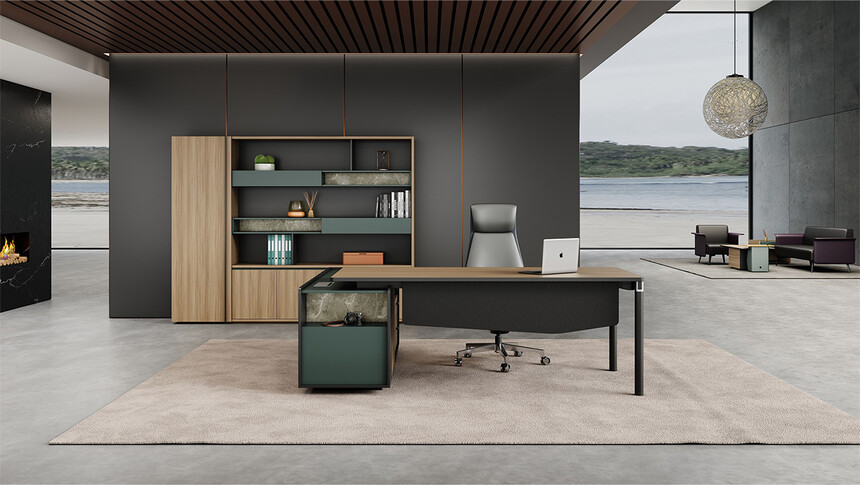 格調(diào)系列是延續(xù)了格瑞系列外圓內(nèi)方的設(shè)計(jì)理念,產(chǎn)品更新?lián)Q代自然流暢,既留下了品牌歷史沉淀的精華,又更大的利用了現(xiàn)有的產(chǎn)品資源。在外觀造型上加以創(chuàng)新,配色上結(jié)合市場(chǎng)潮流色暗夜綠和被市場(chǎng)普遍認(rèn)可的木紋色美洲尤加利調(diào)配在一起,在加上一點(diǎn)裝飾輔色,整體呈現(xiàn)的外觀效果是顏值高,整個(gè)系列配置齊全,設(shè)計(jì)時(shí)尚,適合各種規(guī)模的辦公場(chǎng)所。