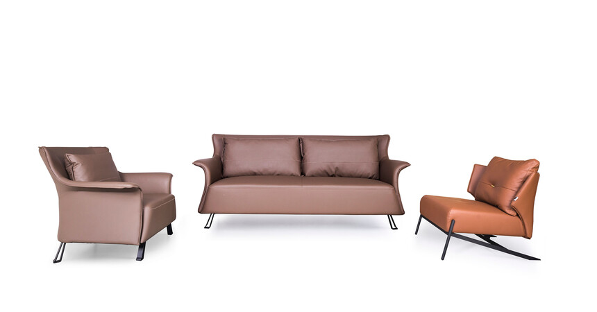 1.面料:采用優(yōu)質(zhì)進(jìn)口保時捷納西皮+麻絨布。2.結(jié)構(gòu):進(jìn)口實(shí)木框架。3.彈簧: 優(yōu)質(zhì)碳素鋼蛇形彈簧。4.填充物:座墊45°高回彈海綿 ,靠包采用科技羽絨加納米回彈顆粒填充??勘?扶手:35°海綿軟硬適中。5.腳架:加厚鋼板電腦切割,冷軋一次成型,表面黑色噴砂防銹防氧化處理.