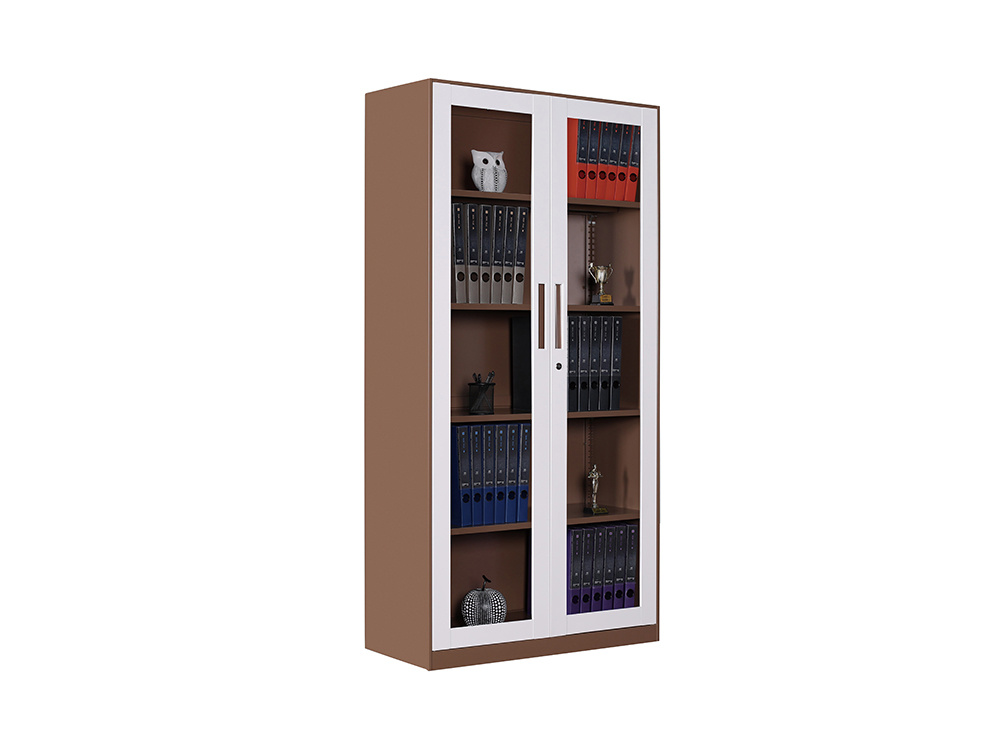 ● 一體結(jié)構(gòu)設(shè)置,上部玻璃對開門,內(nèi)置1層層板可調(diào)高度,內(nèi)置物品可視,便于拿取,中間2個抽屜,下部對開鐵門、門內(nèi)一格板,設(shè)置有拉手和鎖。