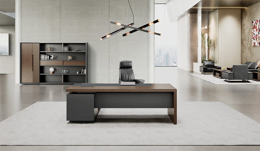 明哲系列辦公家具,采用直紋胡桃和星空灰實(shí)色漆元素,高檔實(shí)木質(zhì)感飾面,深邃飽滿(mǎn),紋理清晰,內(nèi)蘊(yùn)深厚。搭配簡(jiǎn)約端正的造型設(shè)計(jì),臺(tái)腳的斜切裝置,還有產(chǎn)品的布局變化,錯(cuò)落有致,承前啟后,展現(xiàn)極致簡(jiǎn)潔和視覺(jué)效果的完美詮釋。低調(diào)又不失時(shí)尚,穩(wěn)重又不失靈動(dòng),既營(yíng)造現(xiàn)代時(shí)尚的情緒,還給當(dāng)今辦公環(huán)境注入明亮、輕松的舒適感。